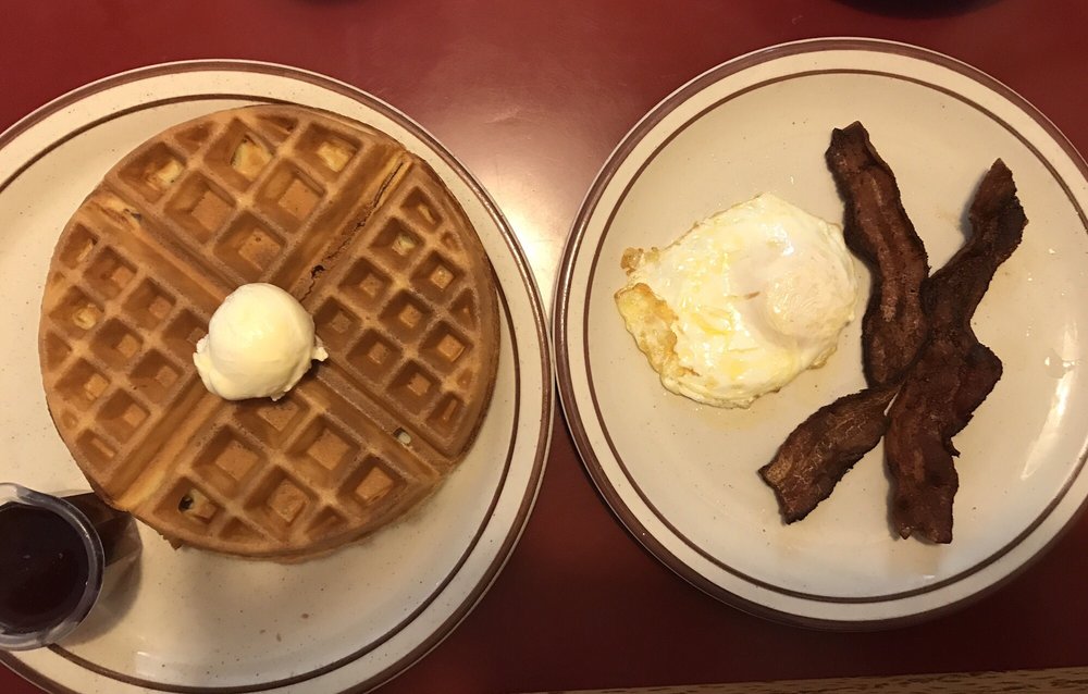 Waiter and service in general was excellent Very accommodating to say least. Breakdown on the food there: I ordered the Eggs Benedict because it is my favorite dish. The hollandaise sauce was on point, nice and buttery. The eggs were poached decently although one was a little under cooked while the other was a little over cooked. I gave the waiter some advice on how to correct this situation, just turn the heat down a little bit on the water that way when the eggs are ready they will at least come out the same. I really liked the use of the thin ham instead of Canadian Bacon. I feel it adds to the flavor. The hash browns need help. I understand cutting costs, but some of the frozen hash browns that come frozen have little to no flavor. I would recommend the country style potatoes, those were much better on flavor. Since the place is called the Waffle Shop, I asked if I could sample their waffles. 1/4 of a waffle made from their own recipe was delivered. Mmm, it was a great waffle, so next time I go I'm going to try a waffle plate. All in all it was a great visit and I look forward to visiting the Waffle Shop again.
